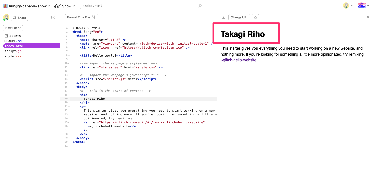 3. 『Hello World!』の部分が自分の名前になっていることを確認してみましょう#