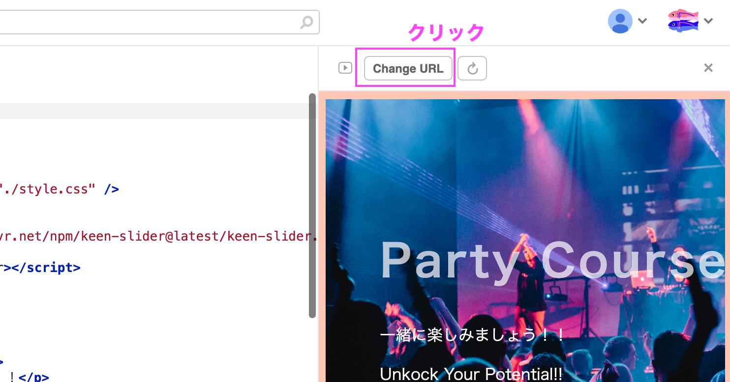 画面右側の「change URL」をクリック